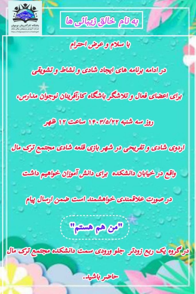 جشنواره شادی و نشاط دانش آموزان واولیای مدارس استثنایی در شهر بازی قلعه شادی-۱۴۰۳۰۵۲۳ 3 دیدگاه / مدرسه استثنایی طراوت, مدرسه عرصه تلاش1 ارومیه, مدرسه فن آور امید / بیلگی سایار جشنواره شادی و نشاط دانش آموزان واولیای مدارس استثنایی در شهر بازی قلعه شادی-۱۴۰۳۰۵۲۳ بیشتر بخوانید »