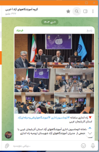 - ارائه نام کاربری و رمز عبور منحصر به فرد برای هر موسس جهت انتشار تمامی مکاتبات، بخشنامهها، آئیننامهها و ارتباطات میان اعضا و ادارات آموزشگاههای آزاد.